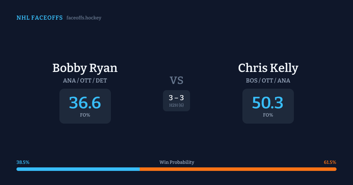 Bobby Ryan vs Chris Kelly — Faceoff Head-to-Head