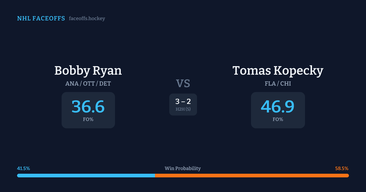 Bobby Ryan vs Tomas Kopecky — Faceoff Head-to-Head