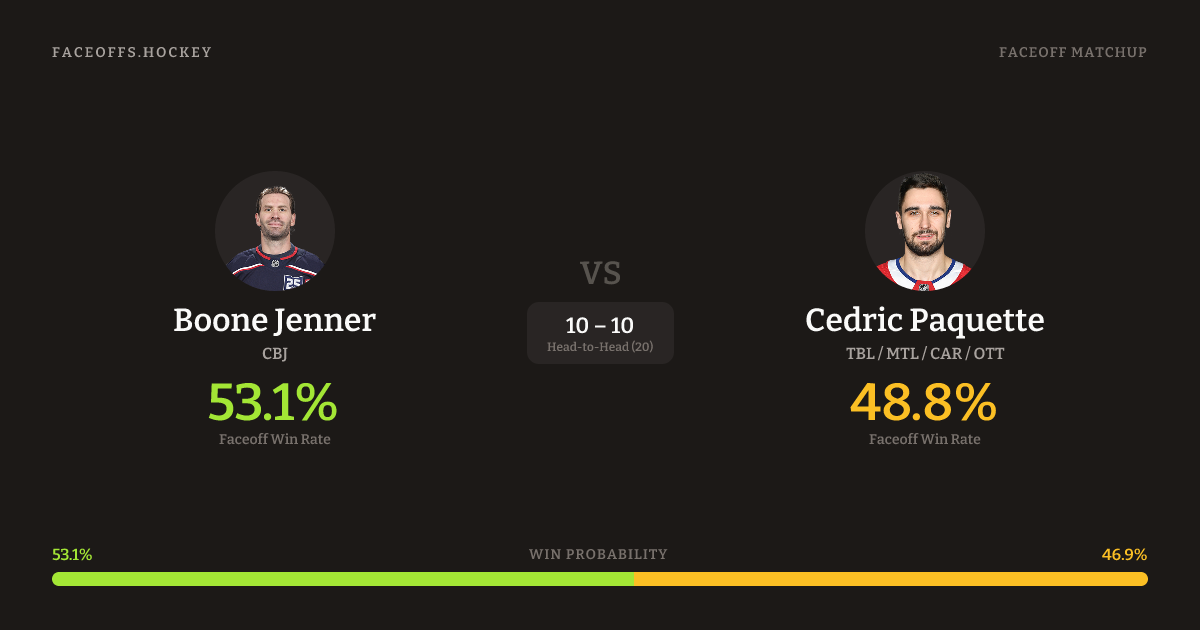 Boone Jenner vs Cedric Paquette — Faceoff Head-to-Head