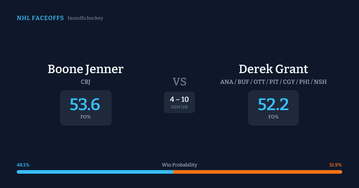 Boone Jenner vs Derek Grant — Faceoff Head-to-Head