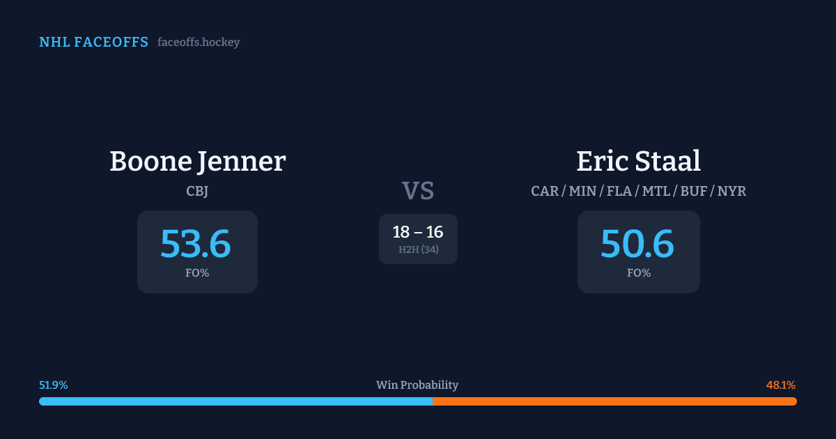 Boone Jenner vs Eric Staal — Faceoff Head-to-Head