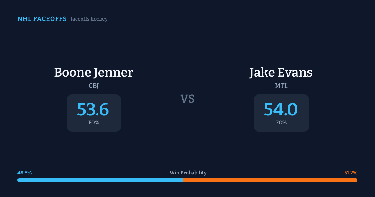 Boone Jenner vs Jake Evans — Faceoff Head-to-Head