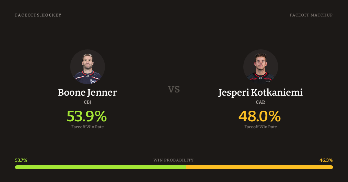 Boone Jenner vs Jesperi Kotkaniemi — Faceoff Head-to-Head