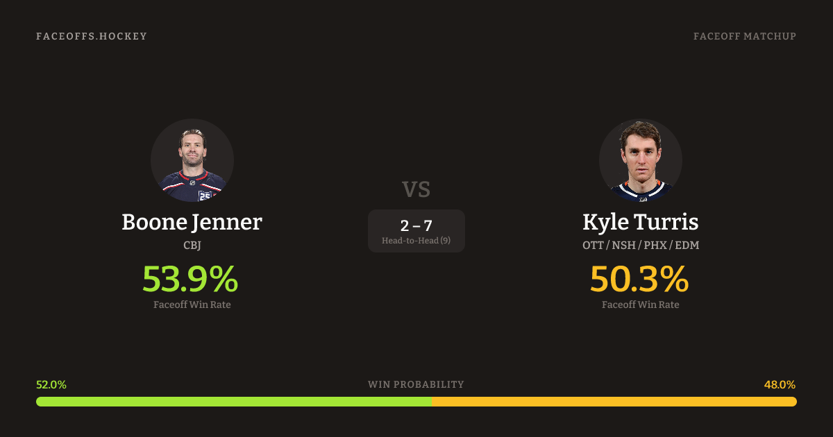 Boone Jenner vs Kyle Turris — Faceoff Head-to-Head