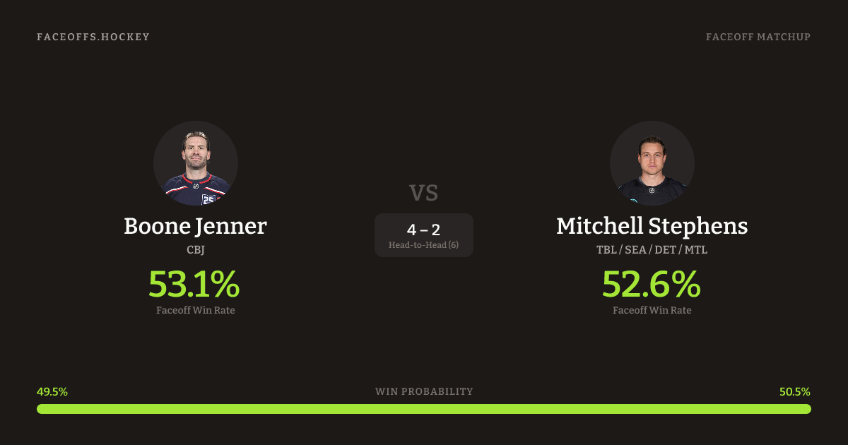 Boone Jenner vs Mitchell Stephens — Faceoff Head-to-Head