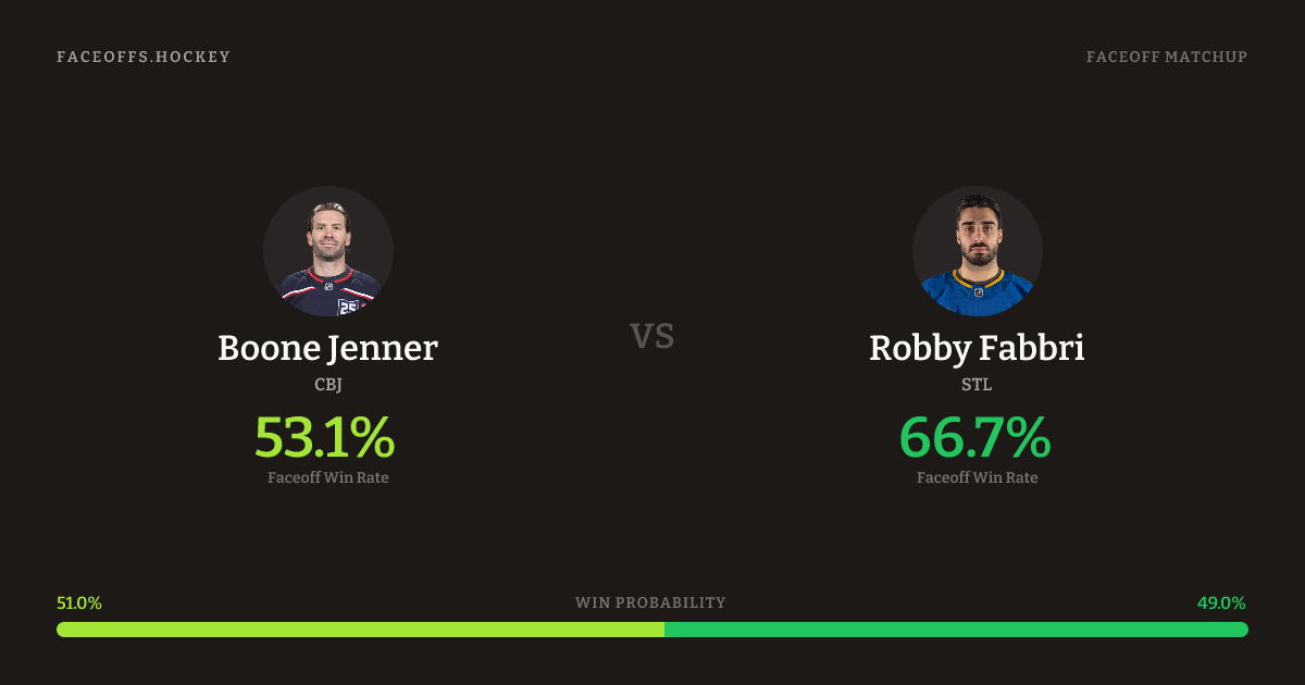 Boone Jenner vs Robby Fabbri — Faceoff Head-to-Head
