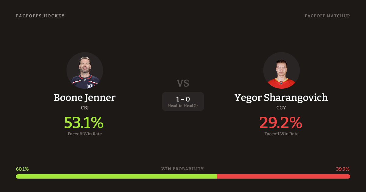 Boone Jenner vs Yegor Sharangovich — Faceoff Head-to-Head