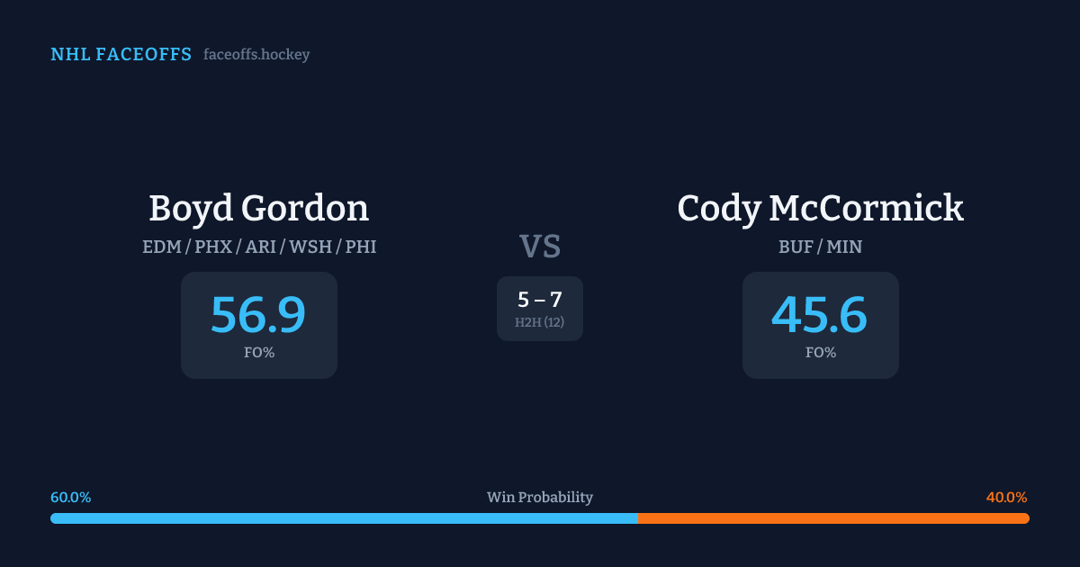 Boyd Gordon vs Cody McCormick — Faceoff Head-to-Head