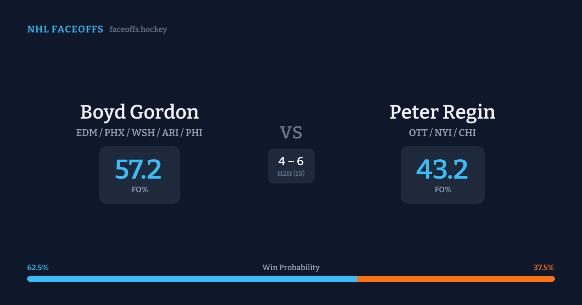 Boyd Gordon vs Peter Regin — Faceoff Head-to-Head
