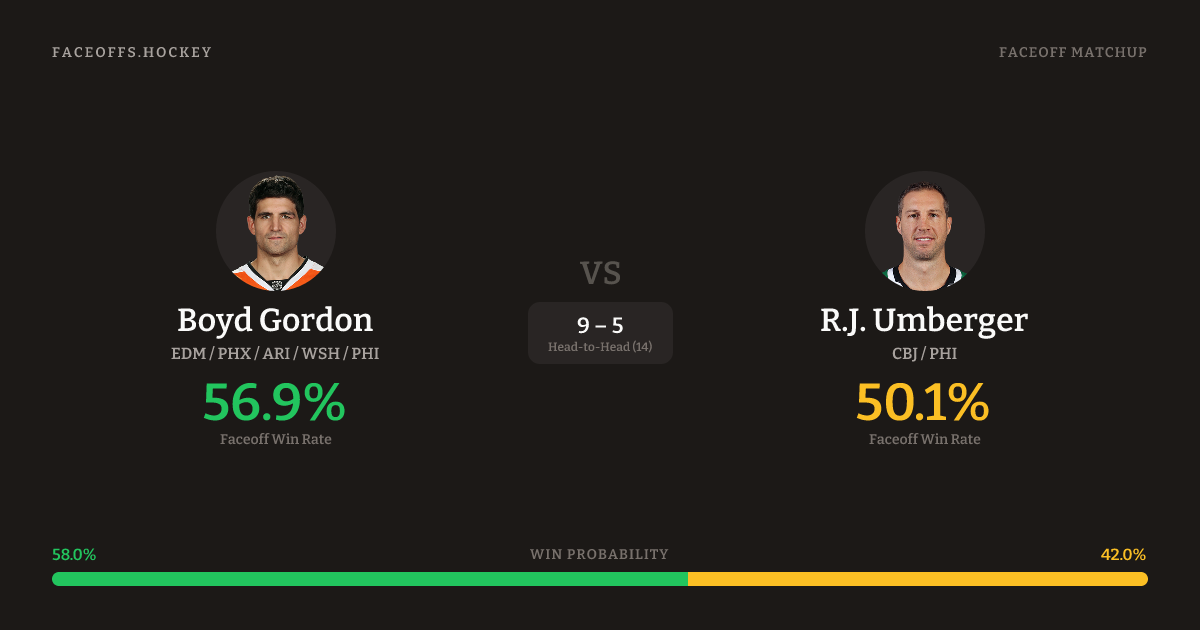 Boyd Gordon vs R.J. Umberger — Faceoff Head-to-Head