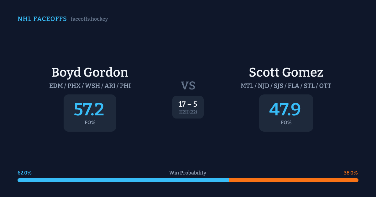 Boyd Gordon vs Scott Gomez — Faceoff Head-to-Head