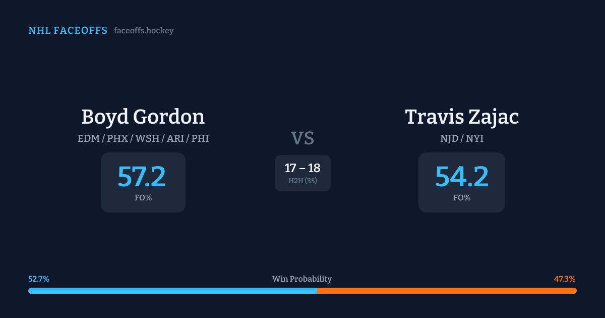 Boyd Gordon vs Travis Zajac — Faceoff Head-to-Head