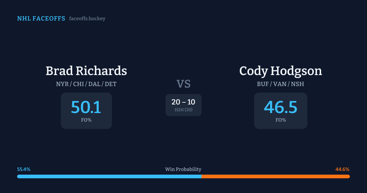 Brad Richards vs Cody Hodgson — Faceoff Head-to-Head