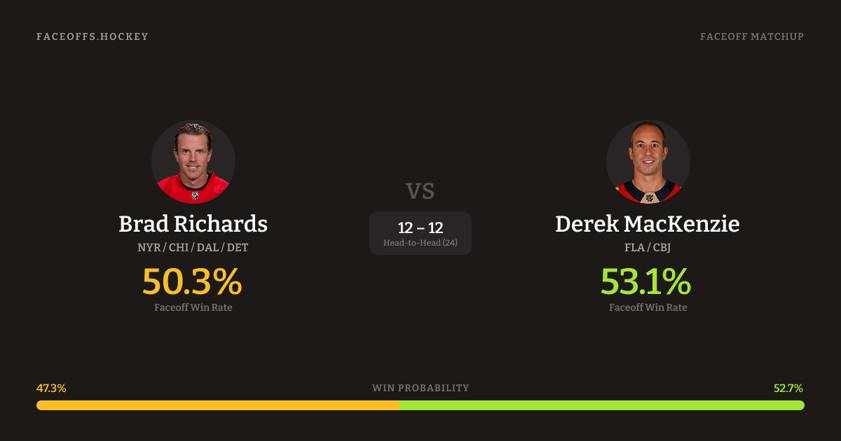 Brad Richards vs Derek MacKenzie — Faceoff Head-to-Head