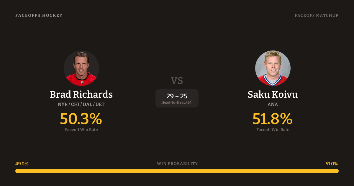 Brad Richards vs Saku Koivu — Faceoff Head-to-Head