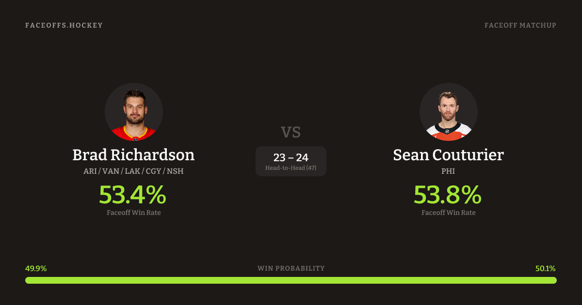 Brad Richardson vs Sean Couturier — Faceoff Head-to-Head
