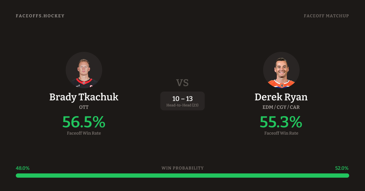 Brady Tkachuk vs Derek Ryan — Faceoff Head-to-Head