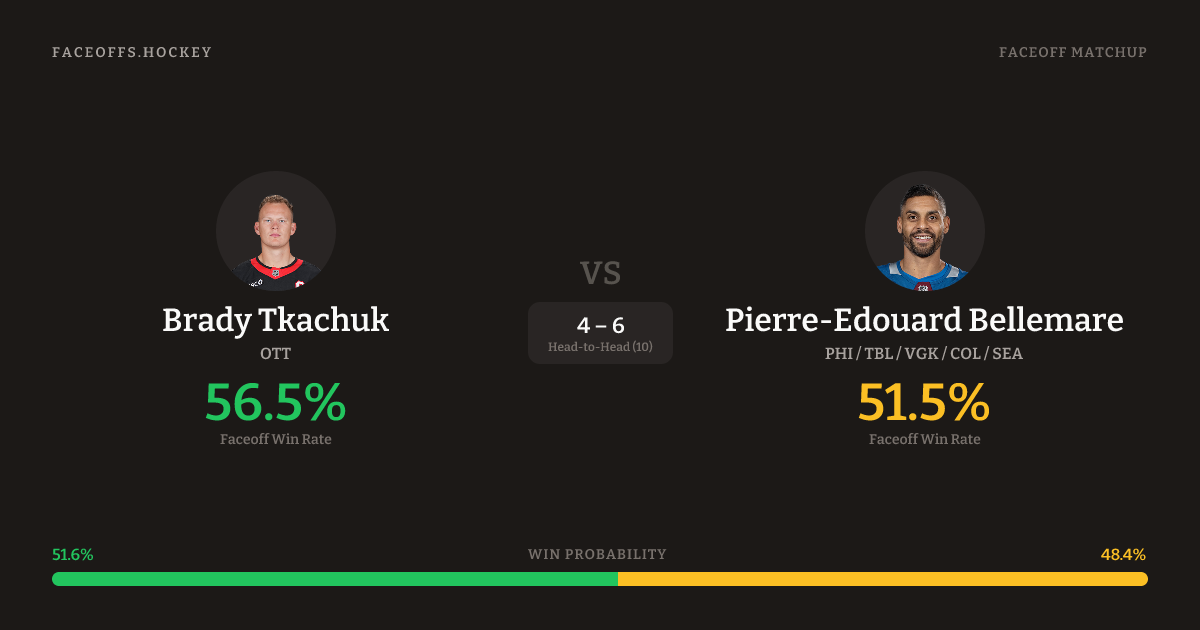 Tkachuk 50.1% vs Bellemare 51.5% (-1.6%)