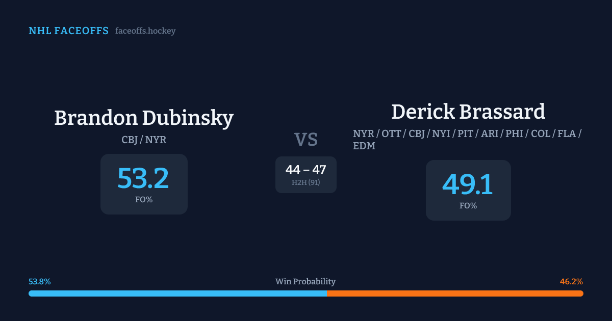 Brandon Dubinsky vs Derick Brassard — Faceoff Head-to-Head
