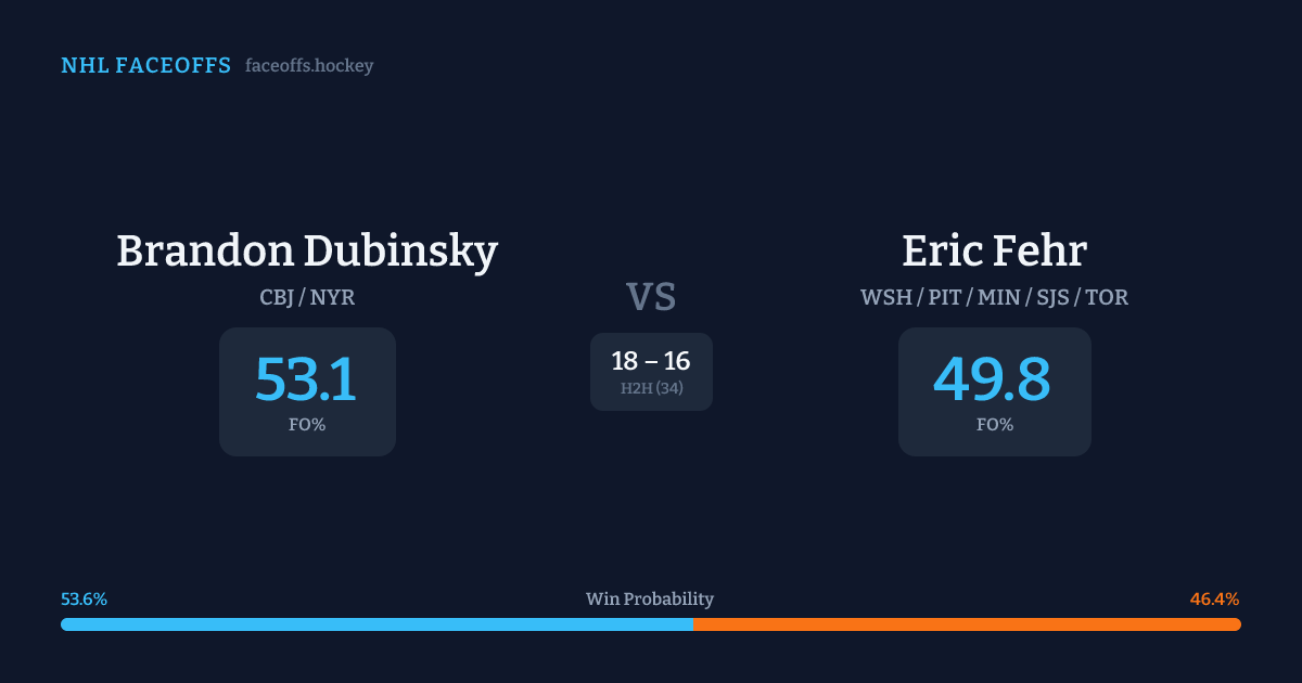Brandon Dubinsky vs Eric Fehr — Faceoff Head-to-Head