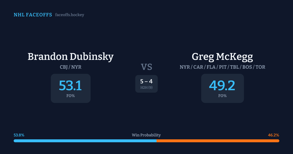 Brandon Dubinsky vs Greg McKegg — Faceoff Head-to-Head
