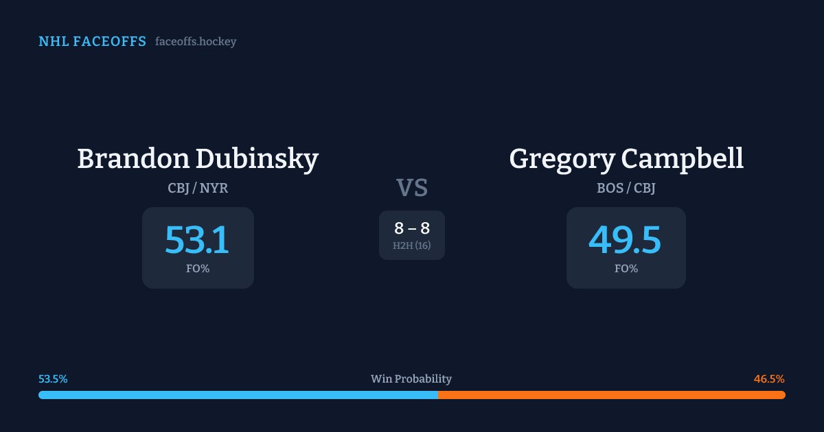 Brandon Dubinsky vs Gregory Campbell — Faceoff Head-to-Head