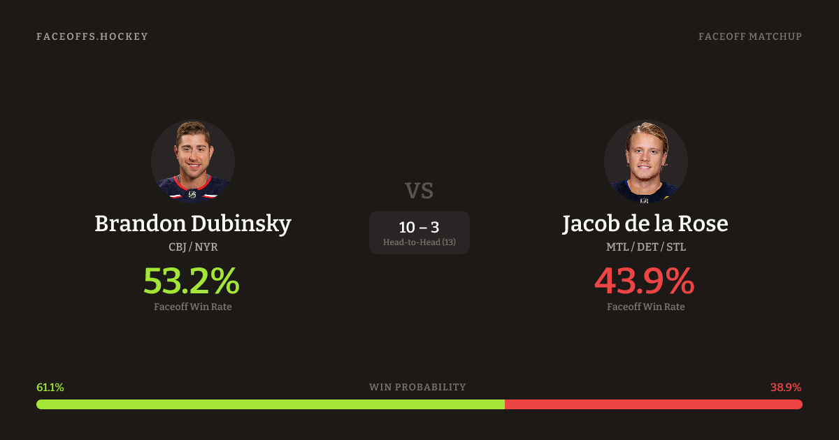 Brandon Dubinsky vs Jacob de la Rose — Faceoff Head-to-Head