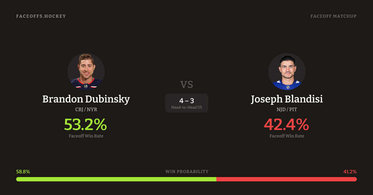 Brandon Dubinsky vs Joseph Blandisi — Faceoff Head-to-Head