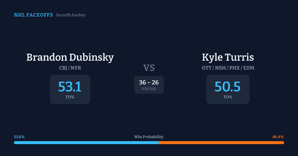 Brandon Dubinsky vs Kyle Turris — Faceoff Head-to-Head
