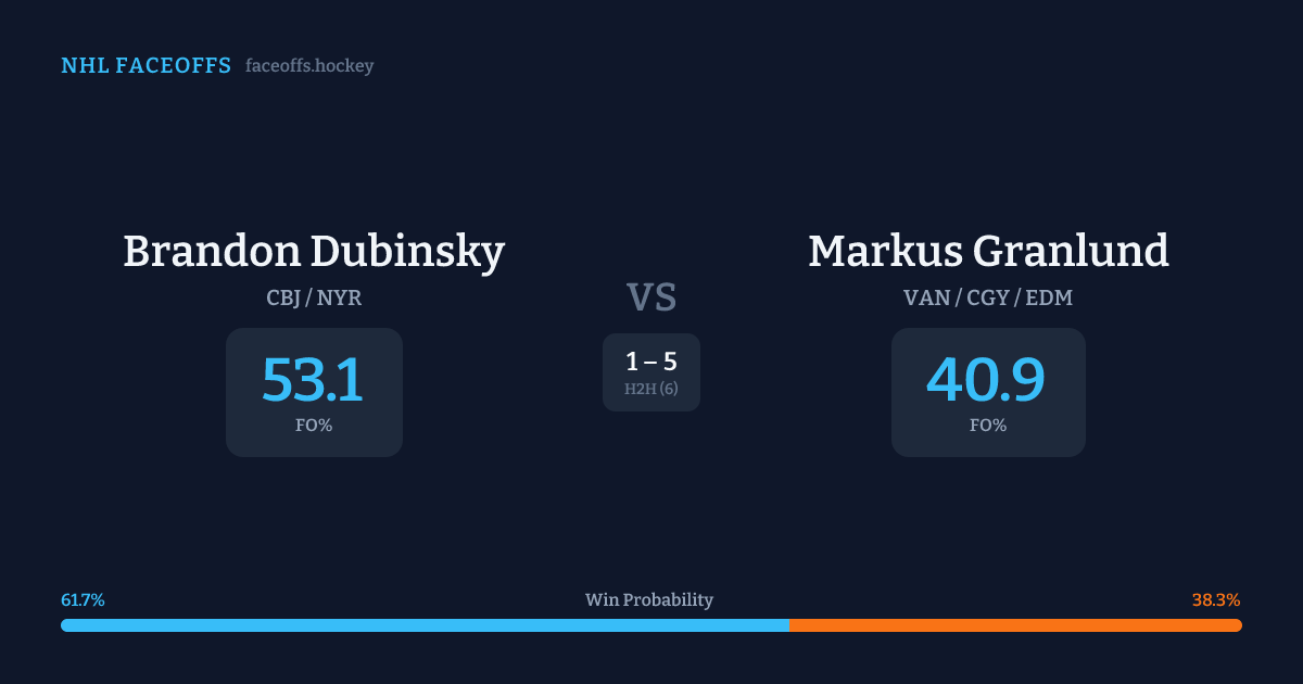 Brandon Dubinsky vs Markus Granlund — Faceoff Head-to-Head