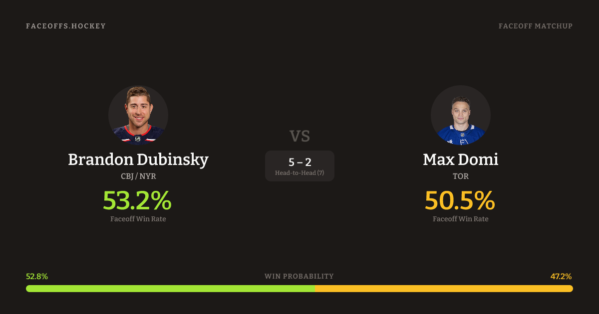 Brandon Dubinsky vs Max Domi — Faceoff Head-to-Head
