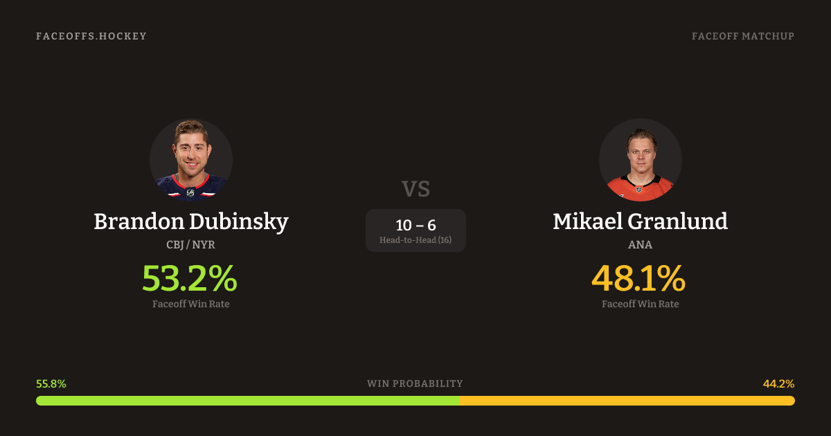 Brandon Dubinsky vs Mikael Granlund — Faceoff Head-to-Head