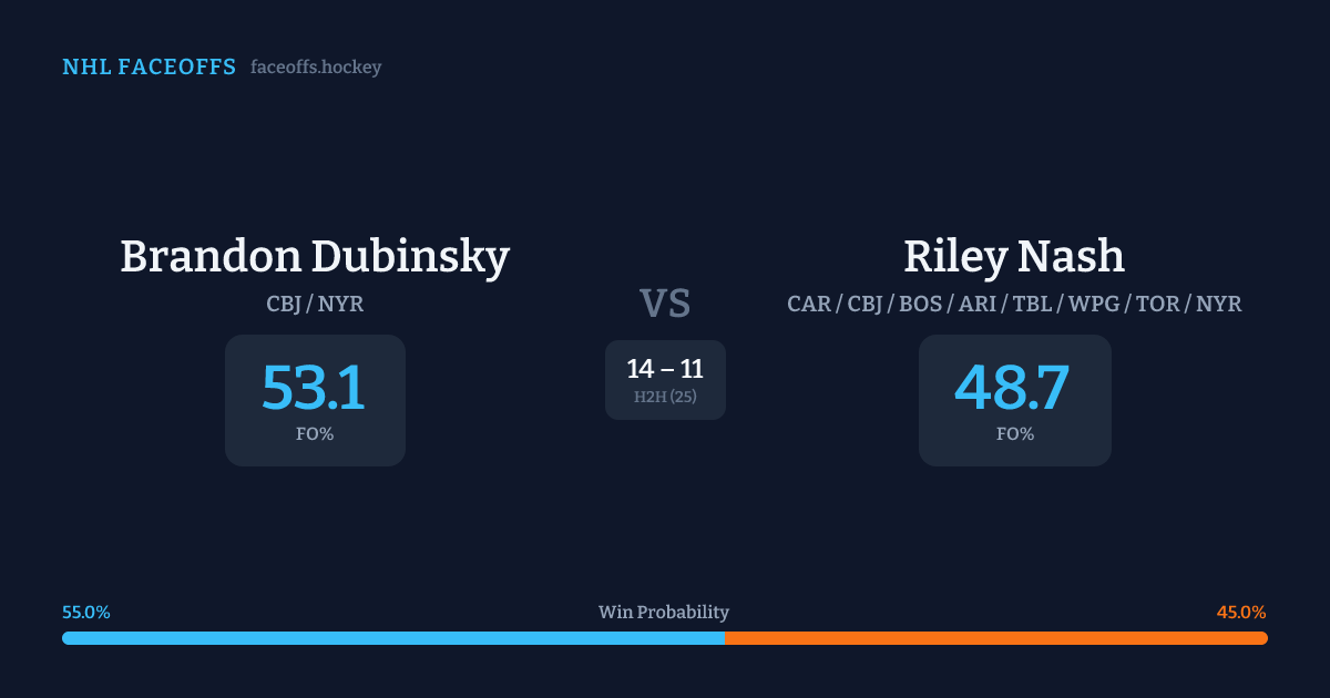 Brandon Dubinsky vs Riley Nash — Faceoff Head-to-Head
