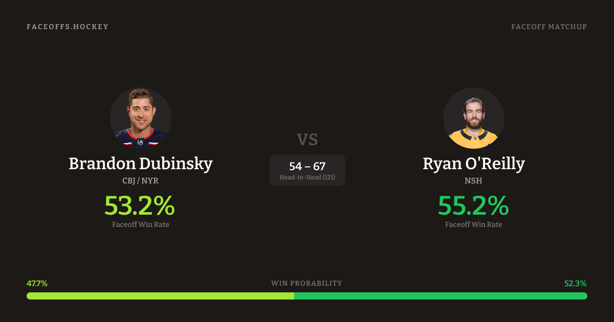 Brandon Dubinsky vs Ryan O'Reilly — Faceoff Head-to-Head