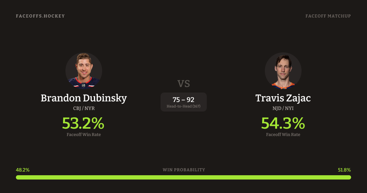 Brandon Dubinsky vs Travis Zajac — Faceoff Head-to-Head