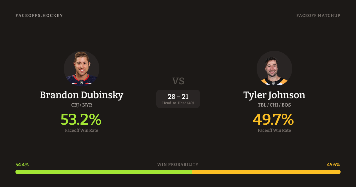Brandon Dubinsky vs Tyler Johnson — Faceoff Head-to-Head