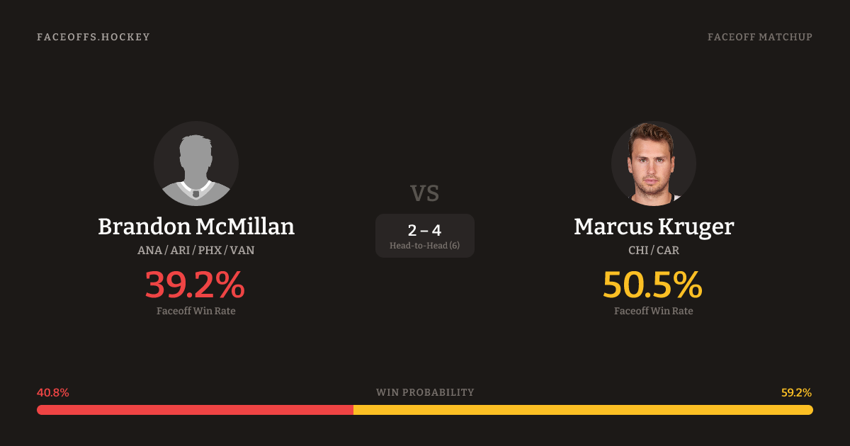 Brandon McMillan vs Marcus Kruger — Faceoff Head-to-Head