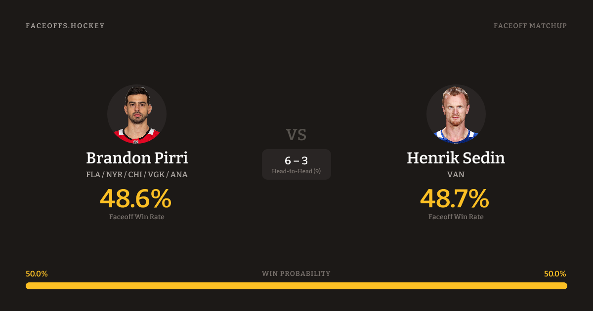 Brandon Pirri vs Henrik Sedin — Faceoff Head-to-Head
