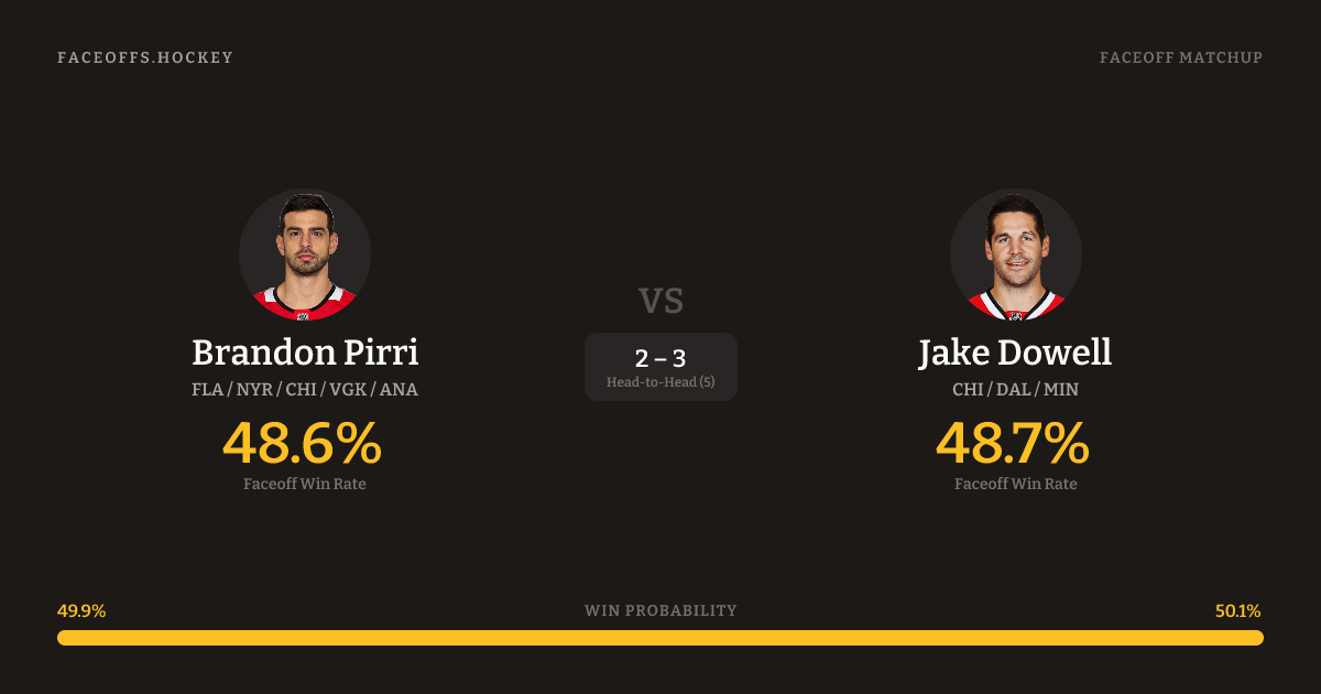 Brandon Pirri vs Jake Dowell — Faceoff Head-to-Head