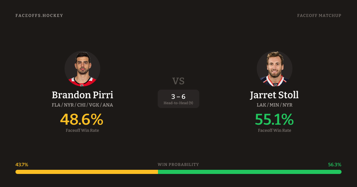 Brandon Pirri vs Jarret Stoll — Faceoff Head-to-Head