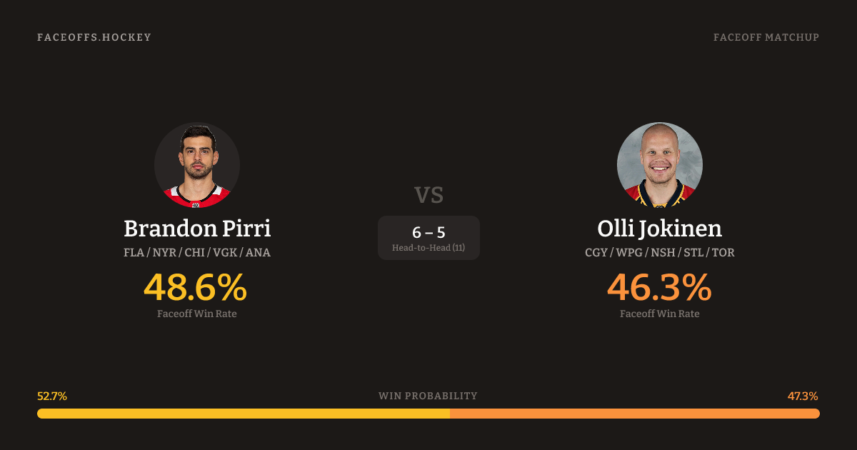 Brandon Pirri vs Olli Jokinen — Faceoff Head-to-Head