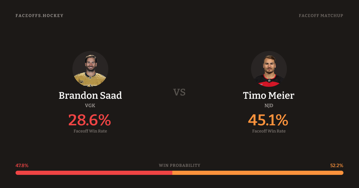 Timo Meier holds a +16.5% FO% edge overall.