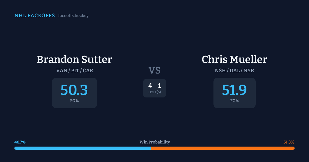 Brandon Sutter vs Chris Mueller — Faceoff Head-to-Head