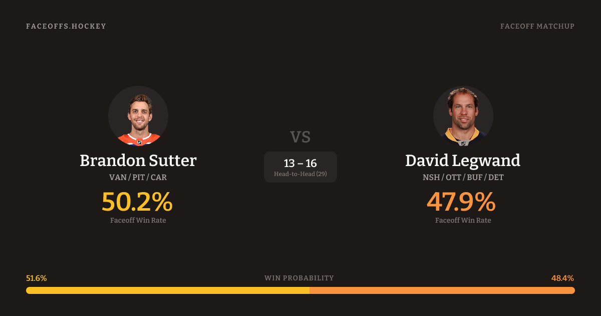 Brandon Sutter vs David Legwand — Faceoff Head-to-Head