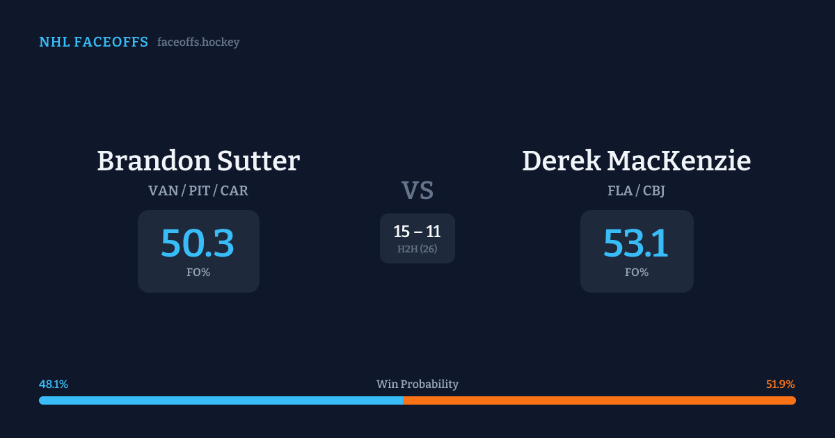 Brandon Sutter vs Derek MacKenzie — Faceoff Head-to-Head