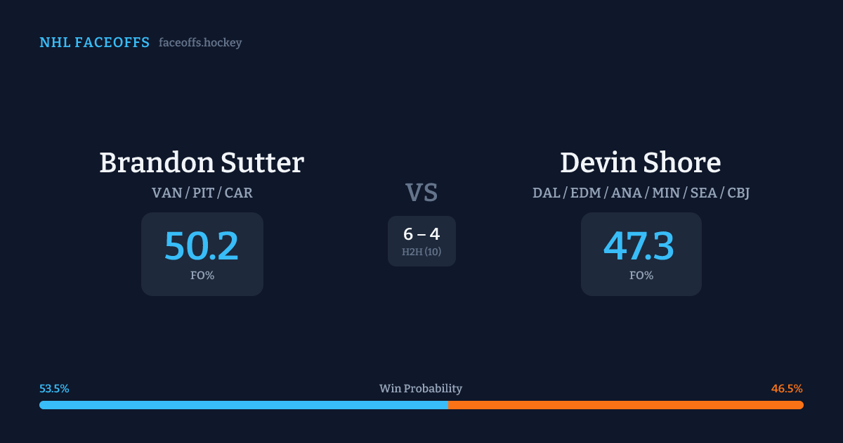 Brandon Sutter vs Devin Shore — Faceoff Head-to-Head