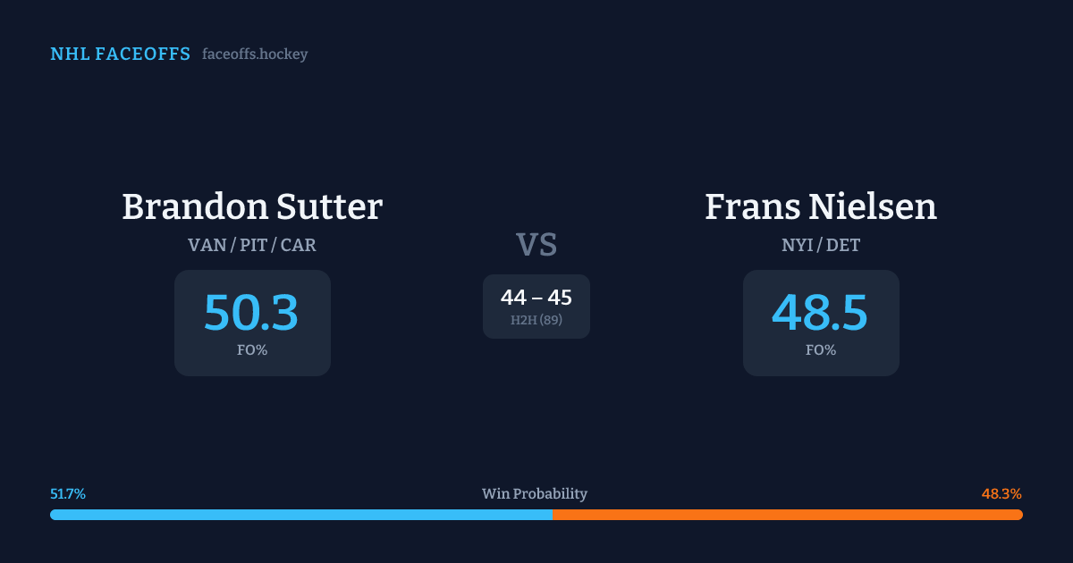 Brandon Sutter vs Frans Nielsen — Faceoff Head-to-Head