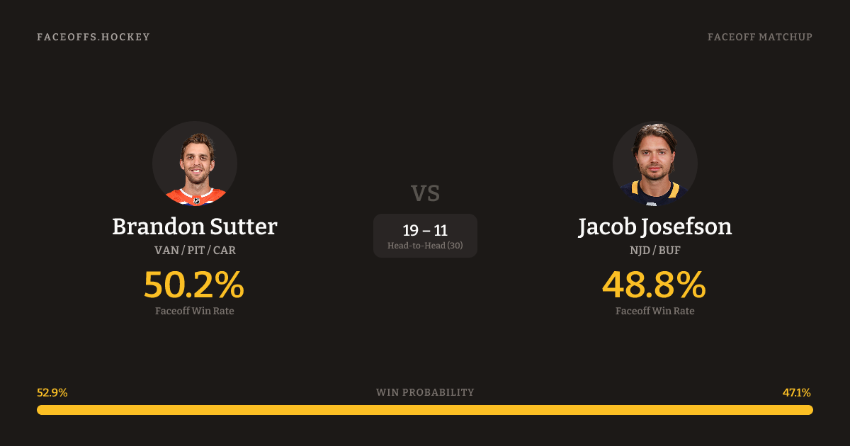 Brandon Sutter vs Jacob Josefson — Faceoff Head-to-Head