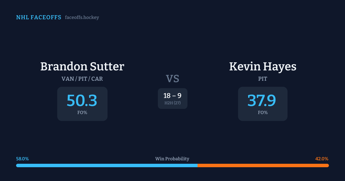Brandon Sutter vs Kevin Hayes — Faceoff Head-to-Head