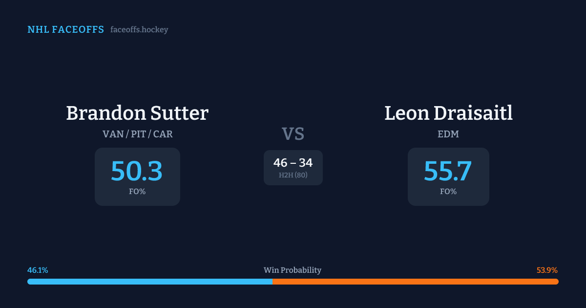 Brandon Sutter vs Leon Draisaitl — Faceoff Head-to-Head